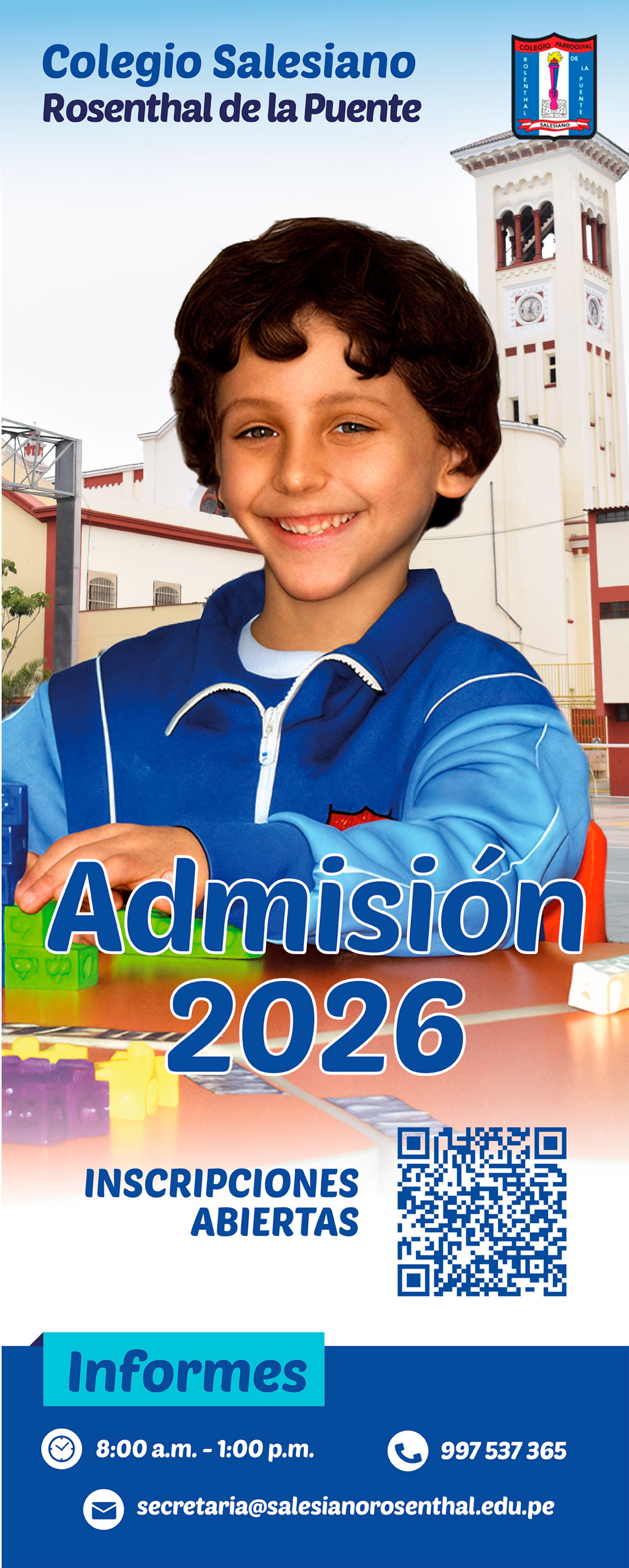 El Colegio Salesiano Rosenthal de la Puente es el espacio donde sus hijos podrán crecer en un ambiente de formación integral, con una educación basada en valores, compromiso académico y acompañamiento constante. El proceso de Admisión 2026 ya se encuentra disponible.